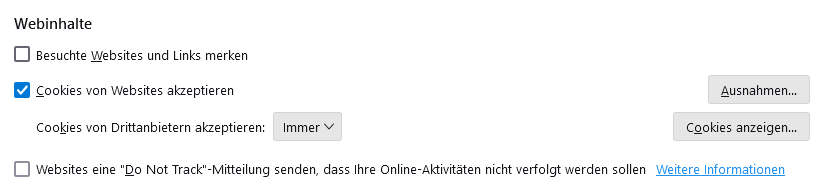 Die Cookie-Einstellungen unter Thunderbird sollten doch auch stimmen?