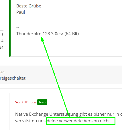 Leider komme ich selbst mit der neuesten Version von Thunderbird im Zusammenspiel mit Exchange nicht weiter.