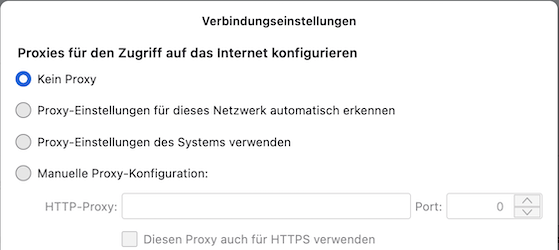 Und da ist aktiviert: "Proxy - Einstellung des Systems verwenden".