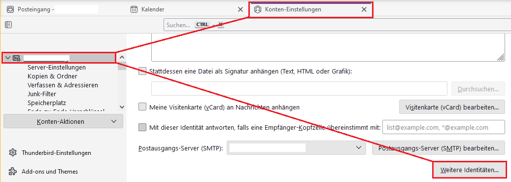 Danach richtest Du das Postfach in Thunderbird ein (Empfehlung: als IMAP-Postfach) und Thunderbird fragt es ab. Eventuell bei Posteo eingerichtete Aliase werden zu dem bereits eingerichteten Konto bei Thunderbird unter "Weitere Identitäten" hinzugefügt.