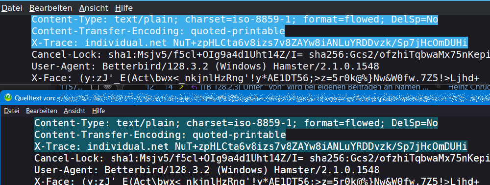 manchmal ist es notwendig, dass bestimmte Passagen aus dem Quelltext (CTRL+U) einer Mail oder eines Beitrages kopiert werden müssen.