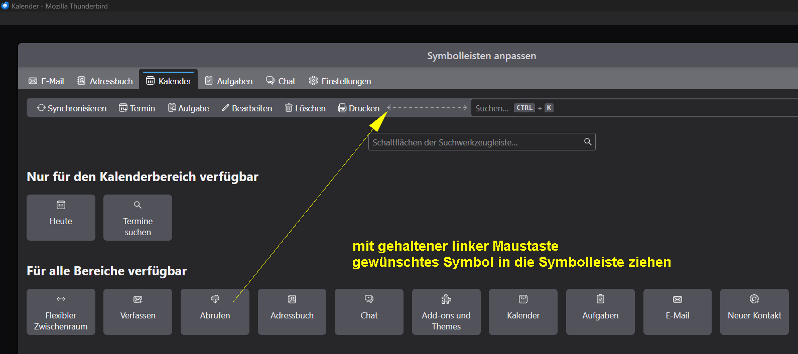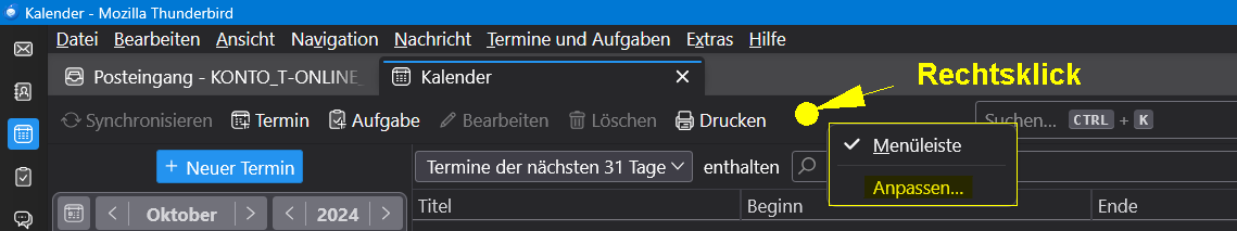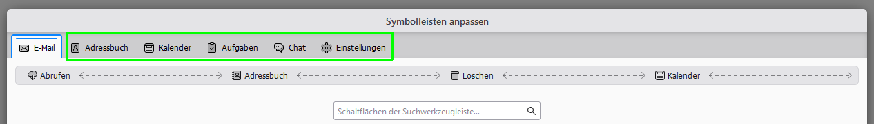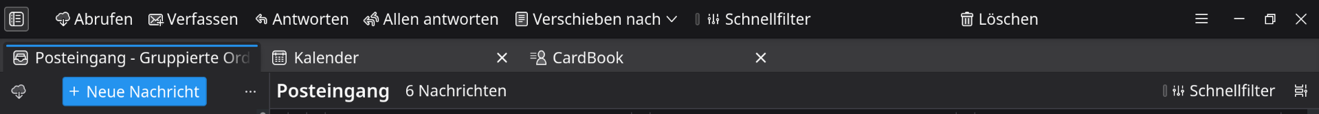 Das ist nicht ganz das, was ich meine. Ich meine die Schaltflächen direkt auf den jeweiligen Registerkarten. Die sehen bei BB so aus, wie im Anhang. Bei TB gibt es diese Zeile nur in CardBook, und wenn es geht, hätte ich sie aber gerne auch bei Post und Kalender.