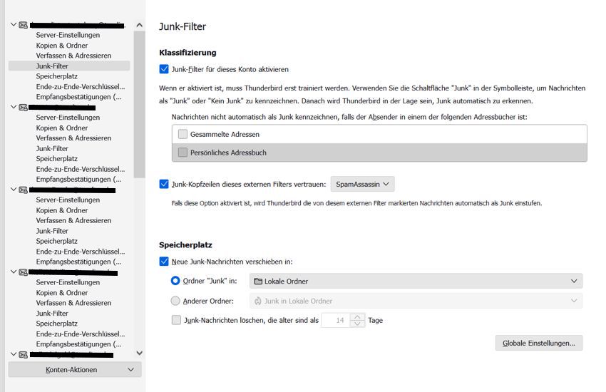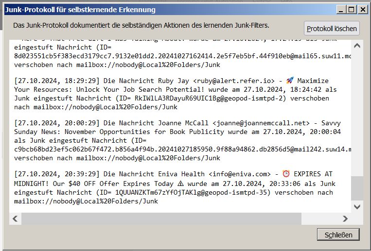 Der Junk-Filter arbeitet nicht. Meine Einstellungen siehe Anhang.