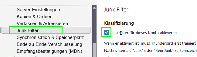 Der Junk-Filter arbeitet nicht. Meine Einstellungen siehe Anhang.