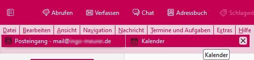 Den Kalender-Tab habe ich nur gehovert. Der Posteingang-Tab ist aktiv.
