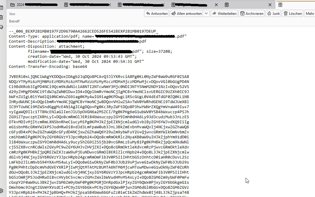Bei Ankunft sind die Nachrichten noch lesbar, später sehen sie dann so aus wie im beigefügten Anhang zu sehen.
