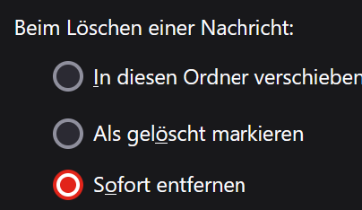 wenn ich, wie auf dem Bild, „sofort entfernen“ aktiviert habe. Werden die E-Mails auch auf dem Server gelöscht?