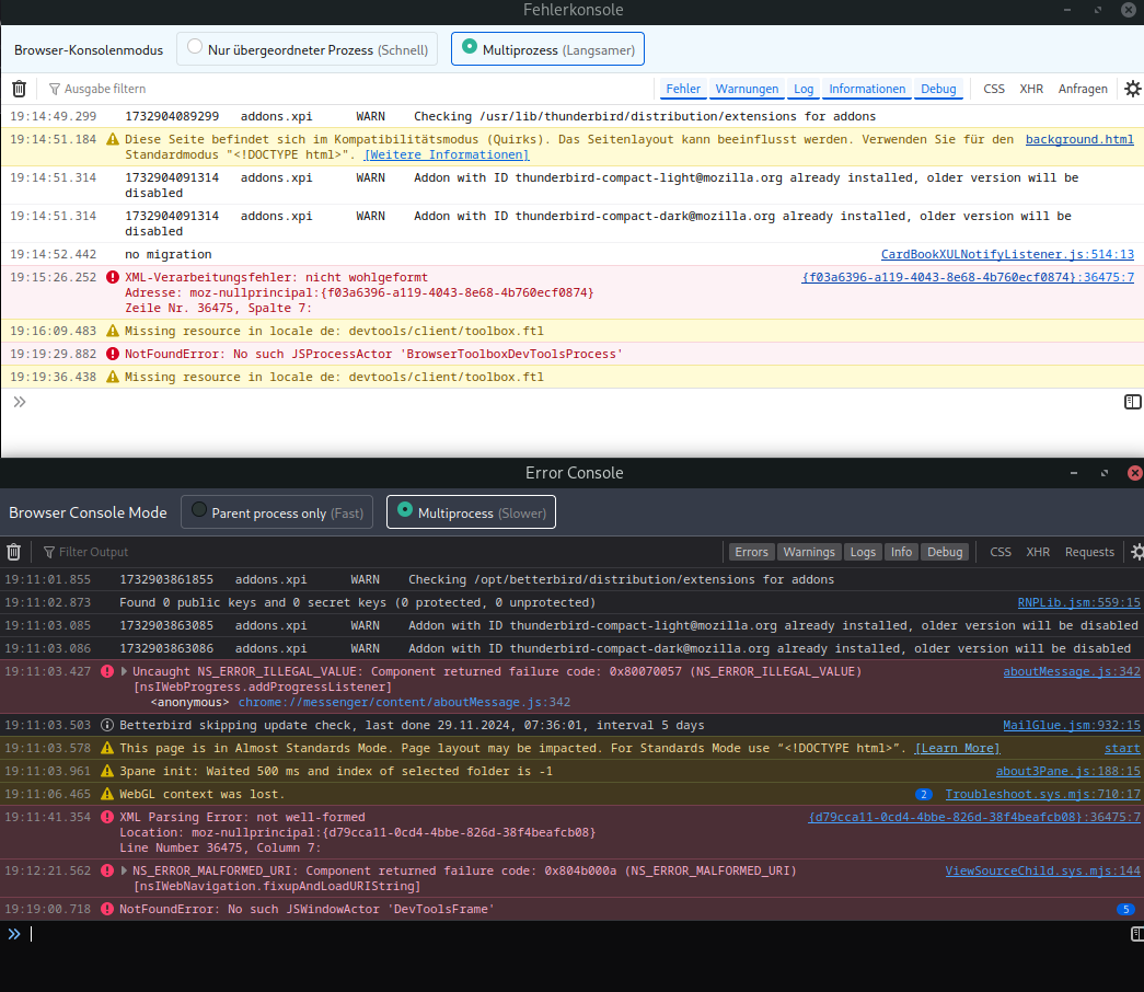 Thunderbird-Versionen: 128.4.3, 128.5.0; Problem existierte aber auch schon in 115.x