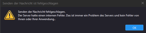 Deine Vermutung wird durch den Text der Fehlermeldung gestützt: "Das ist immer ein Problem des Servers und kein Fehler von Ihnen oder Ihrer Anwendung."