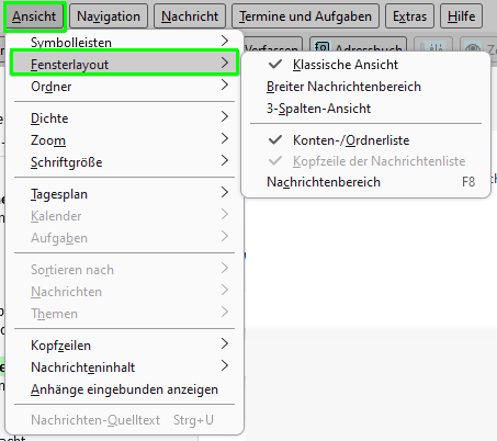 über Menü -> Ansicht gibt es etwas einzustellen, Zeige einmal anonymisiert die Umgebung bei Dir.
