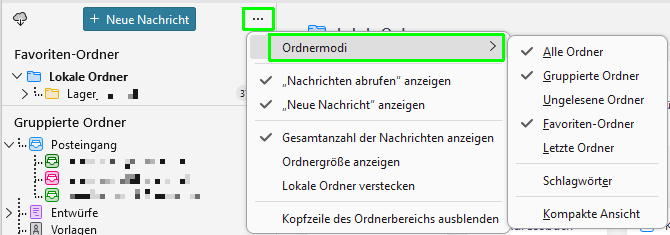 Das hat auch geklappt, jedoch sind die gruppierten Ordner aus der Liste "Favoriten Ordner" nach dem Neustart von Thunderbird wieder verschwunden.