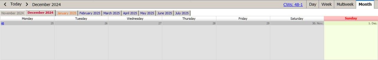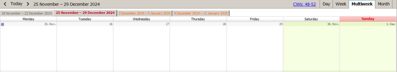 In der mehrwöchigen Ansicht funktioniert dies noch nicht:
