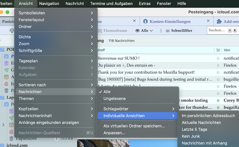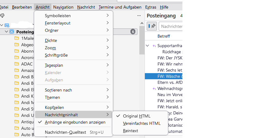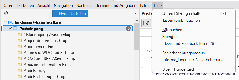 Auf der Schaltfläche von THB auf der Taskleiste wurden heute 8 neue Mails angezeigt, im Posteingang aber nur 2.