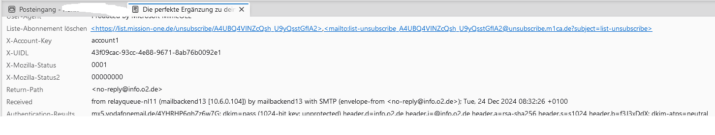 Hilfsweise habe ich die unter dem Postfach von Vodafone eingegangenen Mails an mich versendet und die Mails wurden im Posteingang angezeigt.