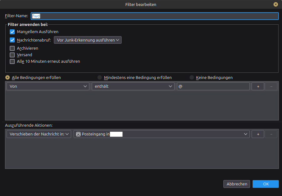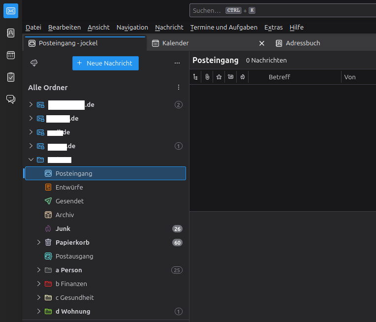 Neuerdings erscheinen eingehende Mails nur noch in den Postfächern und werden nicht in den globalen Posteingang verschoben, wie ich das vorher eingerichtete hatte. Bisher kamen alle Eingangsmails aus den IMAP-Postfächern in diesen globalen Posteingang (/.thunderbird/mail.default/Mail/Local Folders/Inbox).