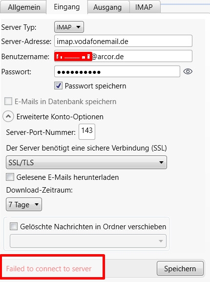 Wie müssen die 2 relevanten IMAP/SMPT-Einträge lauten, damit sie arbeiten?