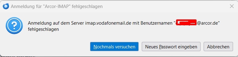 Und noch mal bitte dringend überprüfen ob der Abruf per IMAP erlaubt ist. Zum Test würde ich auch mal diese Option deaktivieren und dann testen (sollte gleiches Fehlerbild sein). Um dann es wieder einzuschalten, nicht das dort was hängt (was ich nicht glaube - aber hey lieber einmal zu viel als zu wenig).