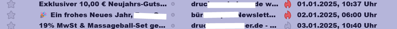 Mein Gedanke war aber, dass ich unterschiedliche Mails evtl. auch mit anderen Farben (z. B. 3 Mails 3 Farben), die ich als sehr wichtig erachte, dauerhaft mit einem sehr gut sichtbaren Hintergrund markieren kann. M. E. war es früher mal möglich. Bin mir nicht sicher.