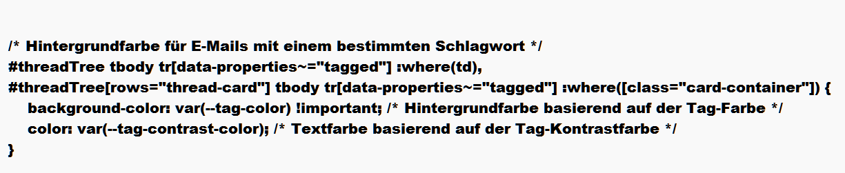 Code, die Hintergrundfarbe einzelner Maileingänge zu verändern sollen