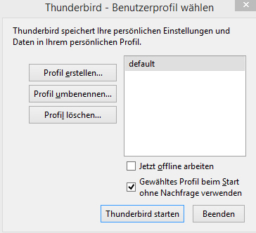 Ich hatte den Profilmanager gestartet, um zu testen, ob ich auf einem externen USB-Laufwerk das von einem abgestürzten PC gerettete TB-Profil einer ziemlich viel älteren TB-Version erfolgreich starten kann.