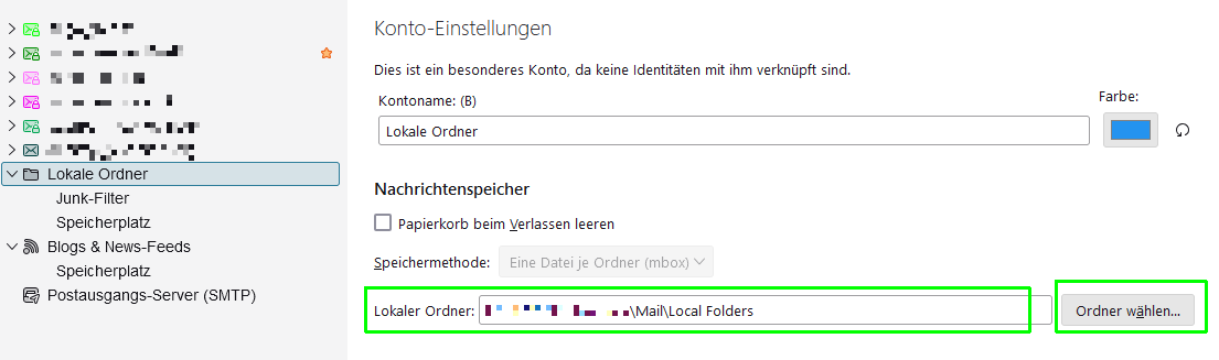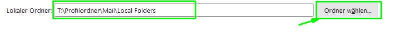 Postfachanbieter: nicht relevant, da lokaler Ordner