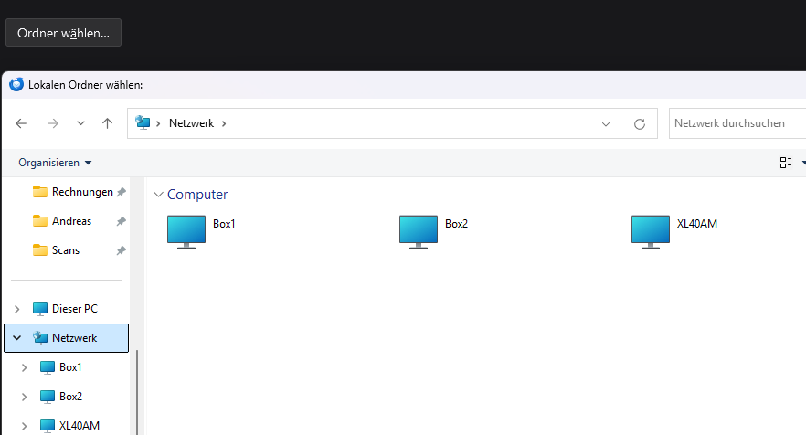 Übrigens kann es immer wieder passieren, dass Netzwerkresourcen plötzlich nicht mehr angezeigt werden. Der Grund ist unklar. Dann hilft es schon, wenn man alternative Eingaben kennt (\\Server\Freigabe) oder einem Netzlaufwerk einen Laufwerksbuchstaben zugeordnet hat.