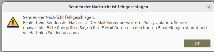 Das ist z. B. bei web.de der Fall. Dort bekommt man die Fehlermeldung 'mailbox unavailable' und 'Sender address is not allowed'.