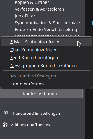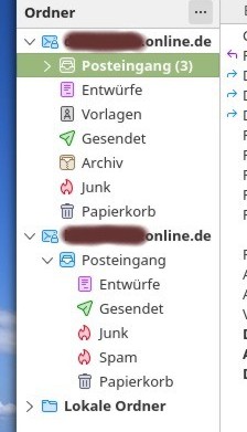 In letzterem Fall legt man einen Account mit der Hauptadresse an (sähe wie in deinem linken Bild aus) und fügt diesem Account dann weitere Adressen, sofern man auch unter diesen weiteren Adresse Mails versenden will, per Rechtsklick auf den Account und dann bei den Konten-Einstellungen im rechten Bildschirm rechts unten