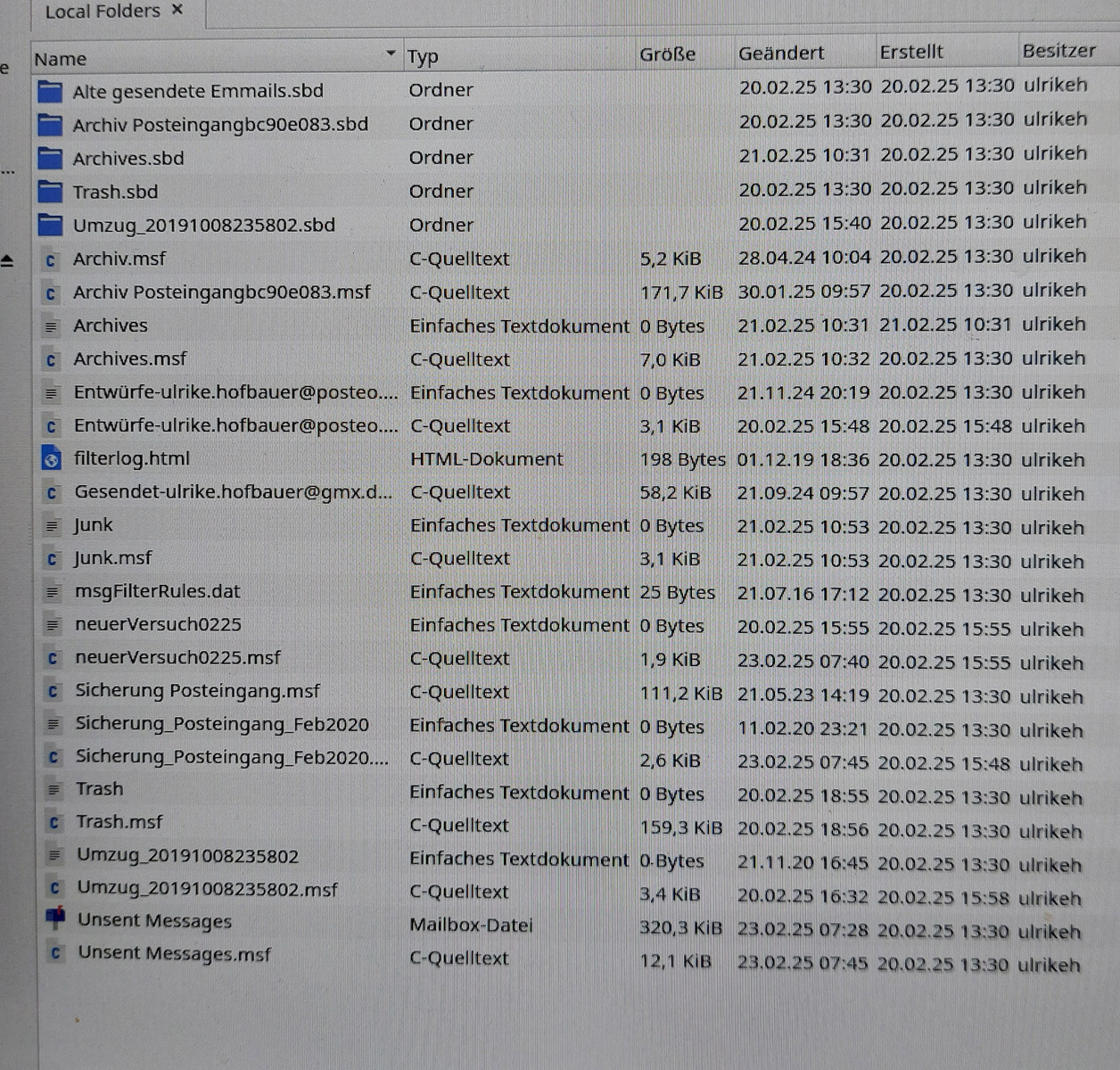 nachdem ich mein Profil auf einen neuen Rechner umgezogen habe, kann ich in Thunderbird meine Lokalen Ordner sehen, aber sie sind leer. Wenn ich in den zugeghörigen Profilordner gehe, sehe ich die jeweiligen Namen - als *.sbd und *msf. Warum werden sie mir aber in TB als leer angezeigt?