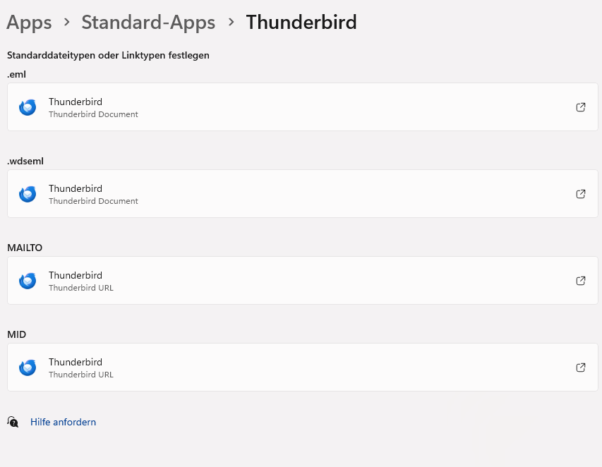 Was ist hier schief gelaufen? Davon abgesehen scheint Win 11 grundsätzlich bei dieser Context Funktion Thundebrid nicht als Mailprogramm zu akzeptieren (habe ich auch auf anderen Rechnern gemerkt), obwohl ich es bei Standardanwendungen vermeitlich so eingestellt habe, siehe 3. Screenshot.