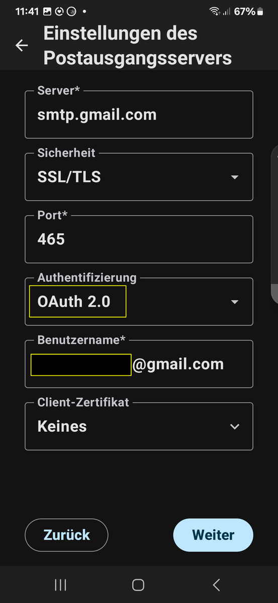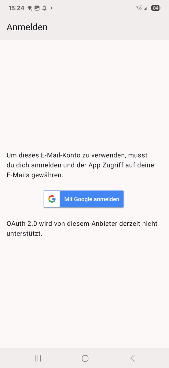 PS: Beim neuen Import wird mir gemeldet, dass ich mich im gmail-Konto anmelden muss. Das soll dann über das Google Konto geschehen. Wenn ich dann auf "Mit google anmelden" tippe erscheint auf dem Handy die Meldung dass OAuth 2.0 von diesem Anbieter derzeit nicht unterstützt wird. Im Windows-Konto ist aber auch OAuth 2.0 eingestellt. Hmm?