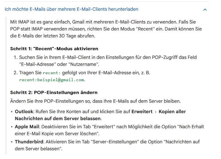 Google erklärt dort aber auch, was man tun soll wenn man mit mehreren Clienten per POP seine e-mails abrufen möchte.