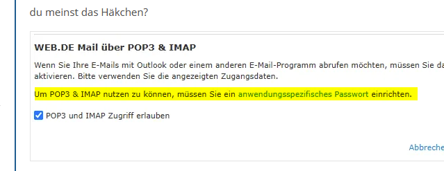 Es lässt sich das Konto aus ..........@web-de nicht einrichten.