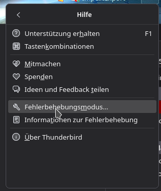 Wenn ich im geöffneten Thunderbird Strg/Umschalttaste verwende passiert gar nichts. Habe es auch im Suchfeld probiert. Das ist alles neu für mich, denn mein Thunderbird lief über 10 Jahre lang völlig problemlos, auch beim ersetzen von Computern und/oder Datenspeicher. Sogar als Lightning in Thunderbird integriert wurde, hatte es bei mir keine Probleme gegeben. Deswegen bin ich so überrascht das plötzlich Probleme vorhanden sind. :(