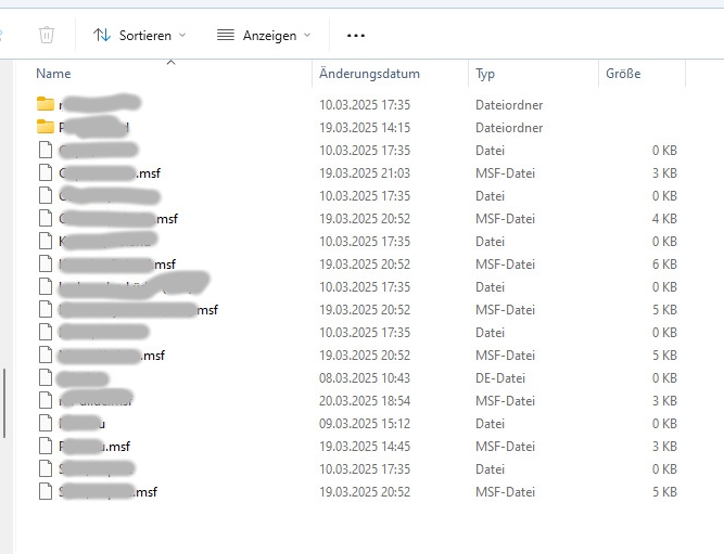 Nach einem Neustart der Maschine heute früh sind diese neu verschobenen Mails im Thunderbird nicht mehr vorhanden. Im Explorer im Profilordner sind sie aber sichtbar.