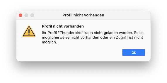 Profil kann nicht gefunden werden (leider habe ich die konkrete Fehlermeldung nicht mehr parat).