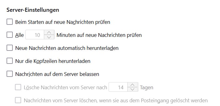 So möchte ich die Server-Basiseinstellung bei der Kontoeinrichtung einstellen können, damit für jedes neue Konto, das ich einrichte, diese Einstellungen schon voreingestellt sind, siehe Screenshot, dadurch würde dann beim Beenden der Konteneinrichtung der Serverinhalt nicht automatisch runtergeladen werden: