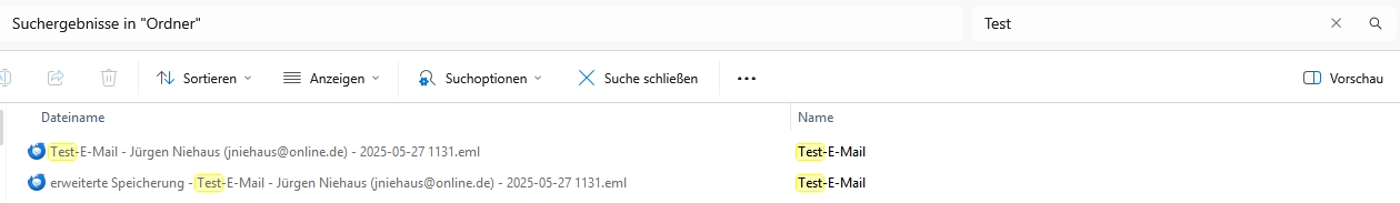 Hardcopy 2 zeigt die gleichen 2 Dateien im Suchmodus des Explorers.