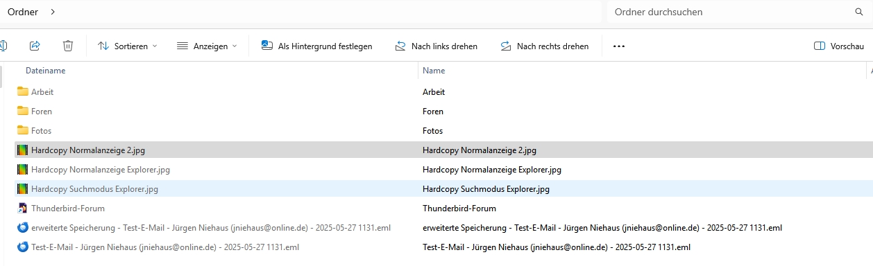 Dann haben wir das geklärt - also Du speicherst immer die Mails und schreibst das Datum dabei davor??? Das kann ich fast nicht glauben, aber wer keine Arbeit hat macht sich welche. (Sorry aber ich speichere tausende Emails als eml und da ich faul bin habe ich das AddOn um nicht immer das Datum dazu schreiben zu müssen und den Betreff zu kürzen usw...