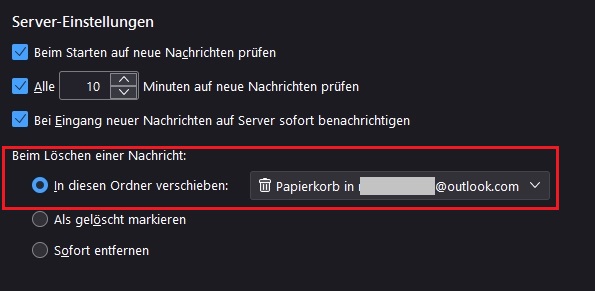 Bei meinen arcor.de Emails werden diese, wenn ich sie lösche, sofort total gelöscht und nicht zuerst in den Papierkorb verschoben. Das geschieht nur bei arcor.de und nicht bei anderen Accounts. In den Thunderbird-Einstellungen kann ich das "Löschen" auch nicht in einen anderen Ordner zwischenverschieben, oder dafür einen neuen Ordner anlegen.