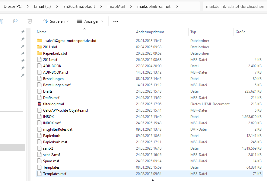 Frage noch dazu. Ich nutze TB auf mehrern PC. Ist die genante Datei ggf. auch von einem anderen PC zu verwenden? Habe fast überall die gleichen Konten am Start. Auf dem Laptop sind allerdings noch sehr alte lokale Ordner mit in TB eingebunden. Die müste ich auch so auf dem anderen PC dazu laden können. Manchmal suche ich tatsächlich darin noch was rum.