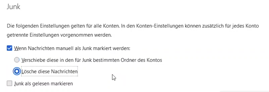 Wenn ich eine Mail manuell als Junk markiert habem wurde sie auch gleich gelöscht.