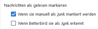 Das ist nicht das Problem. Ich habe Angst wenn der Junk Filter was als Junk erkennt, was dann passiert. In der Beschreibung steht ja: Wenn Nachrichten als Junk markiert sind