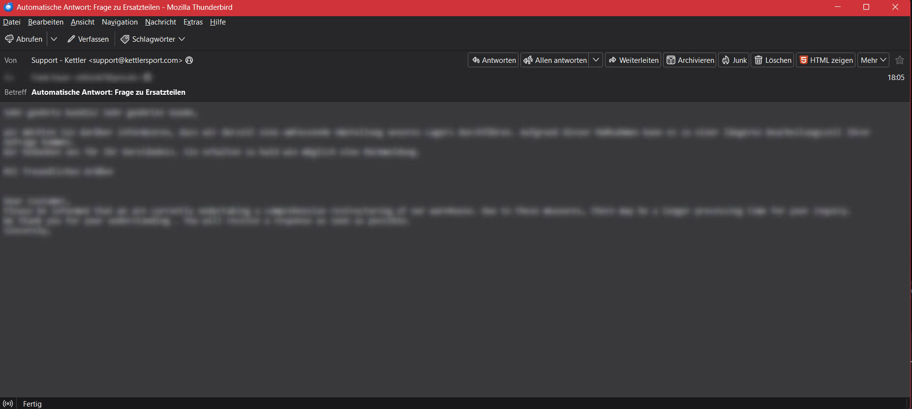 Also wenn ich die Mail doppelklicke und sich dann die Mail in dem separatem Fenster öffnet