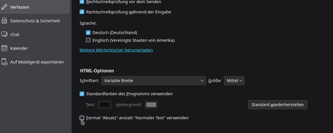 Nach dem Update auf Thunderbird 128.12.0esr zeigt der Nachrichteneditor beim Verfassen von HTML-Mails auffällig große Zeilenabstände und einen überhöhten Textcursor – obwohl der Formatstil auf "normaler Text" oder "Vorformatiert" steht.