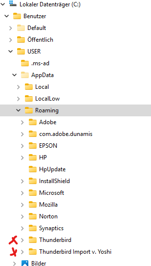nach Festplattenwechsel habe ich TB neu installiert und mehrere Mail-Accounts eingerichtet. Nun sollen ältere Mails aus mehreren Accounts (Freenet etc. alle POP3) + Adressbuch vom anderen PC importiert werden. Das gelingt bisher nicht, obwohl der gesamte TB-Ordner schon auf die Festplatte Ziel-PC kopiert ist.