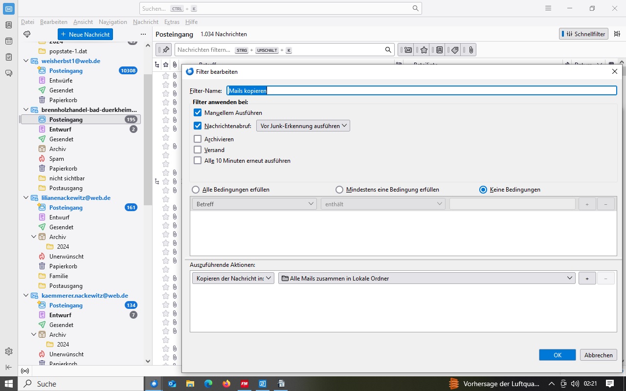 Dann habe ich bei allen Mailadressen diesen Filter gesetzt.