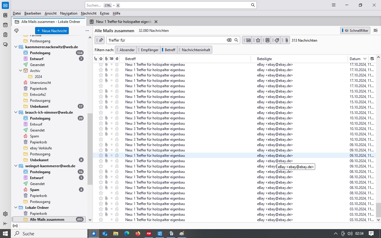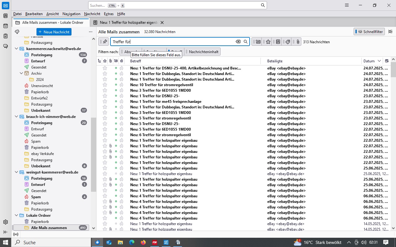 Heute Kontroliert! "Treffer für" wieder 313 Stück in "Alle Mails" drin!