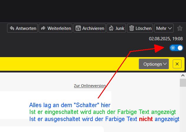 Ist der Schalter eingeschaltet wird der farbige Text angezeigt