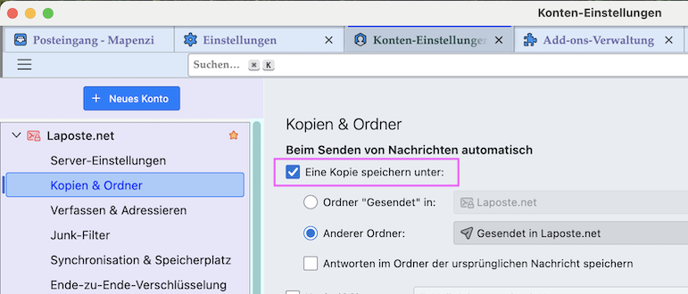 hatte früher irgendwann ein Addon – oder wars Bestandtei von TB? – um eine Mail mit Strg-D abzuschicken, die daraufhin nicht im IMAP-Postfach verbleibt, sondern direkt gelöscht wird.
